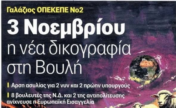 Όπως γράφει η εφημερίδα, 3 Νοεμβρίου η νέα δικογραφία θα βρίσκεται στην Βουλή. Ζητείται άρση ασυλίας για 2 νυν και 2 πρώην υπουργούς.