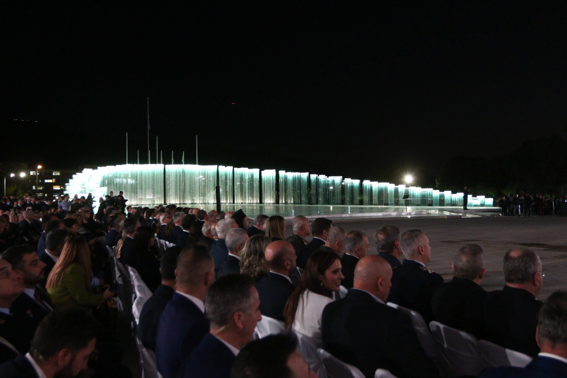 Το έργο της βιοκλιματικής όψης συνδυάζεται αρμονικά με την «Κιβωτό Εθνικής Μνήμης» του γλύπτη Κώστα Βαρώτσου – μια συλλογή γυάλινων κολόνων που ξεκινούν από ύψος ενός μέτρου και φτάνουν έως τα έξι, φέροντας χαραγμένα τα ονόματα των 121.692 πεσόντων των Εθνικών Αγώνων της Ελλάδας.