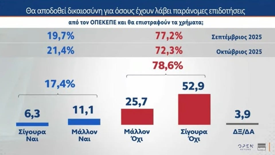 Δημοσκόπηση MRB: 7 στους 10 θέλουν νέα κόμματα – Καταδίκη κυβέρνησης για ΟΠΕΚΕΠΕ και ΕΛΤΑ