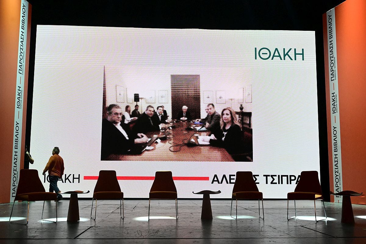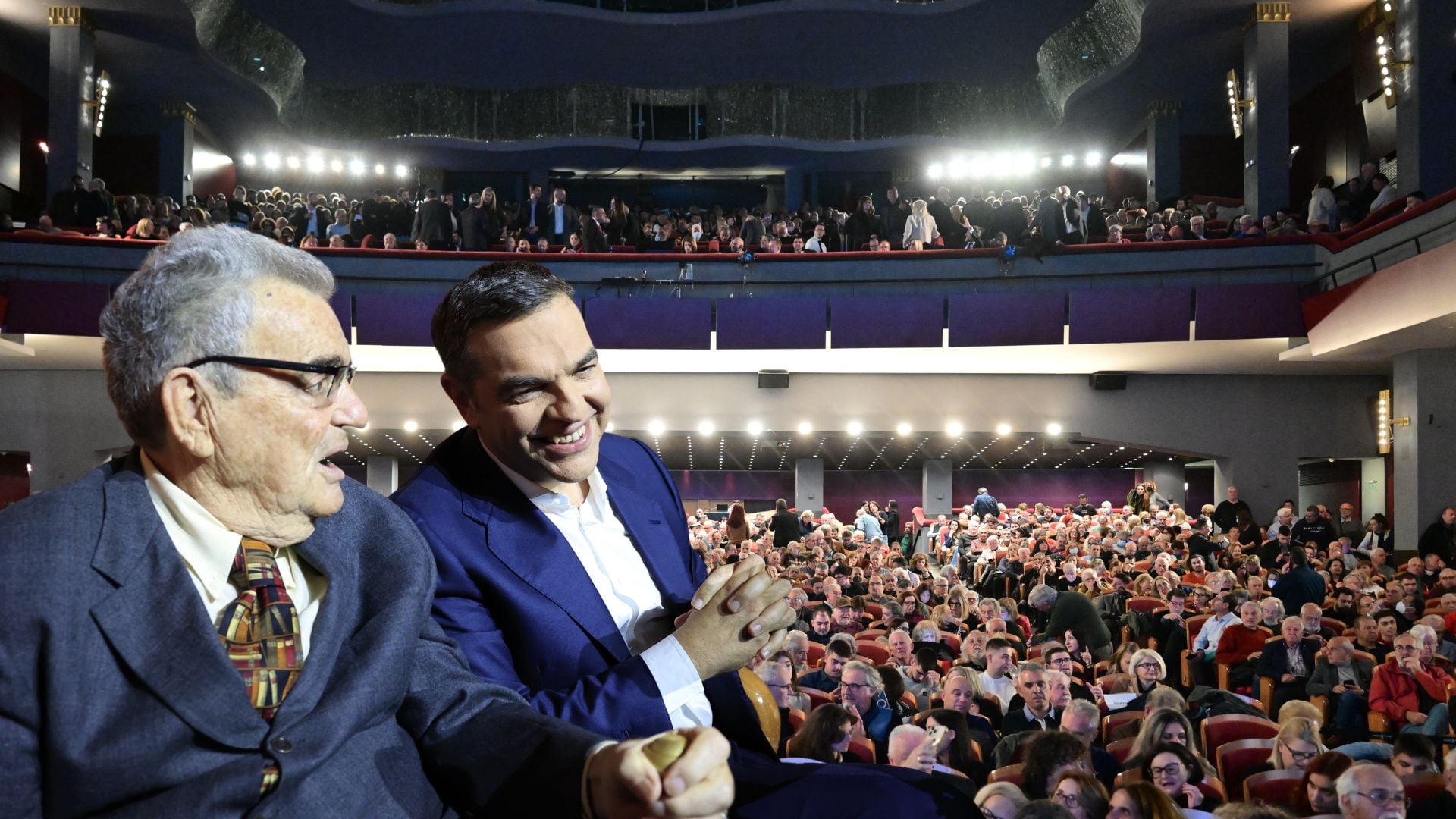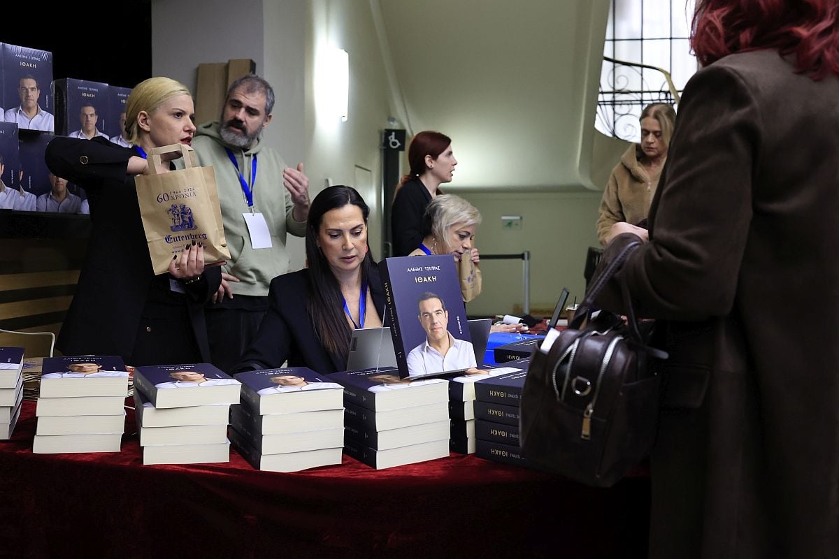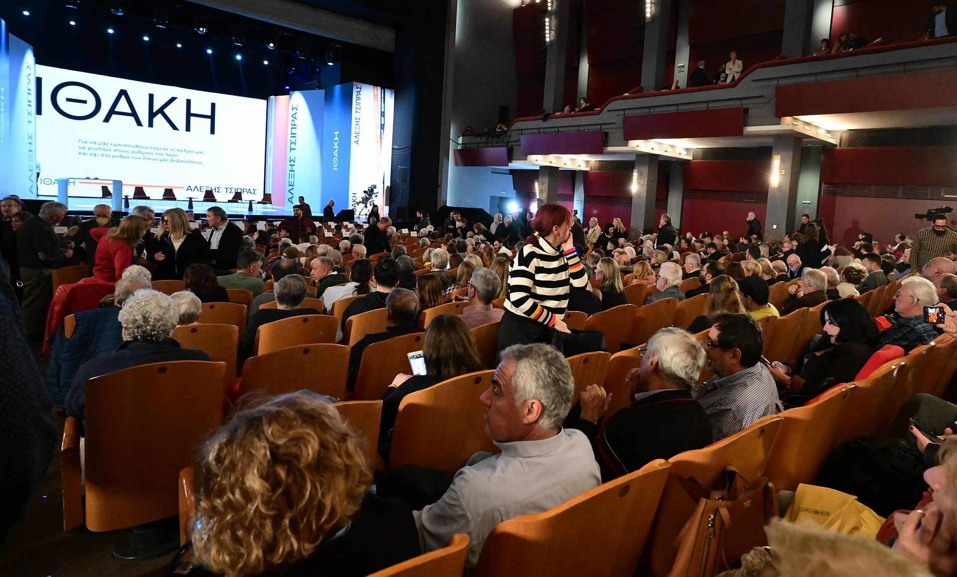 Δεκάδες πολίτες συγκεντρώθηκαν από νωρίς το απόγευμα έξω από το θέατρο «Παλλάς», όπου το βράδυ είναι προγραμματισμένη η παρουσίαση του βιβλίου «Ιθάκη» του Αλέξη Τσίπρα.