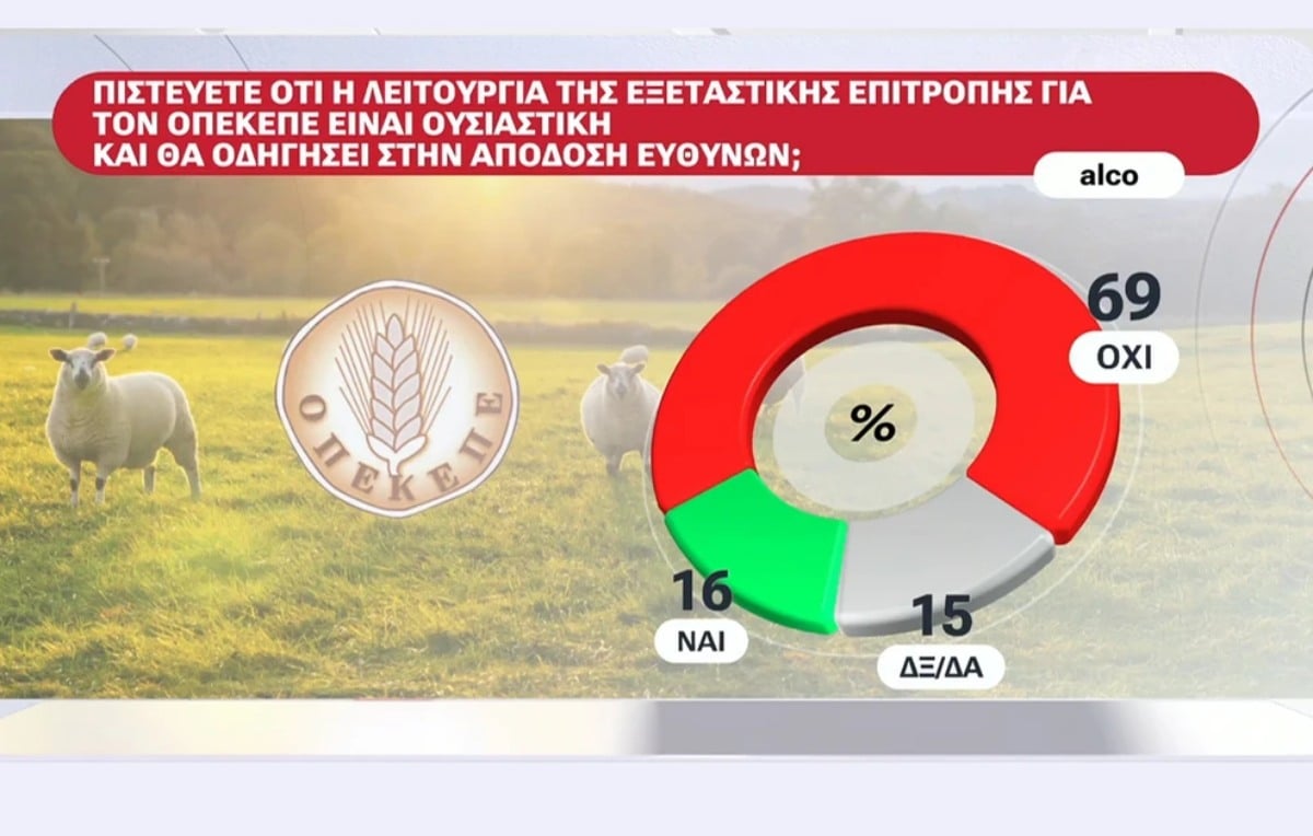 Αναφορικά με το πολύκροτο σκάνδαλο του ΟΠΕΚΕΠΕ με τους «Φραπέδες», τους «Χασάπηδες» και τις… Ποπάρες, μόλις το 16% χαρακτηρίζει τη λειτουργία της Εξεταστικής Επιτροπής της Βουλής «ουσιαστική» και ότι «θα αποδώσει ευθύνες», έναντι του 69% που διαφωνεί.