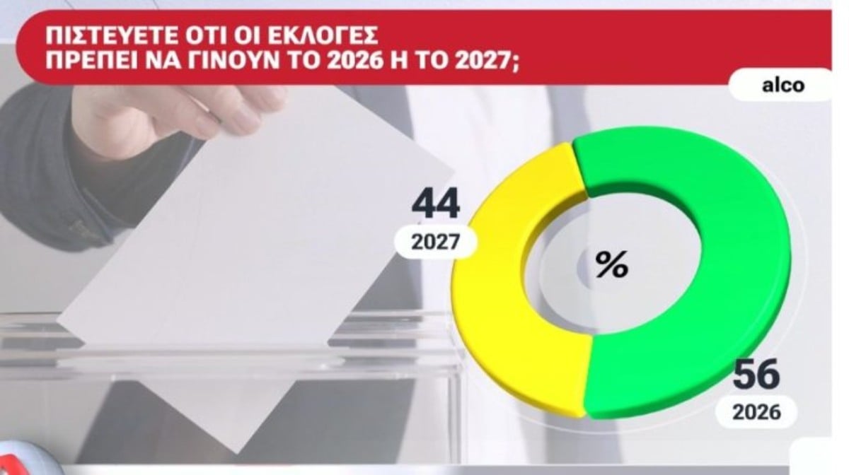 Όσον αφορά, εξάλλου, στο ερώτημα «Πιστεύετε ότι οι εκλογές πρέπει να γίνουν το 2026 ή το 2027;» οι πολίτες φανερώνουν πως δεν αντέχουν άλλο, καθώς, σε ποσοστό 56% απαντούν «το 2026», έναντι 44% που μπορούν να περιμένουν έως το 2027.