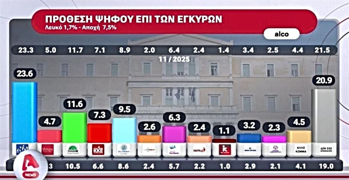 Ολοφάνερη η -σταθερή- πτώση της ΝΔ σε ακόμη μία δημοσκόπηση, την ώρα που οι αναποφάσιστοι τείνουν να «χτυπήσουν» αυτοδυναμία.