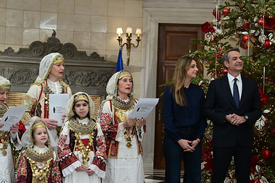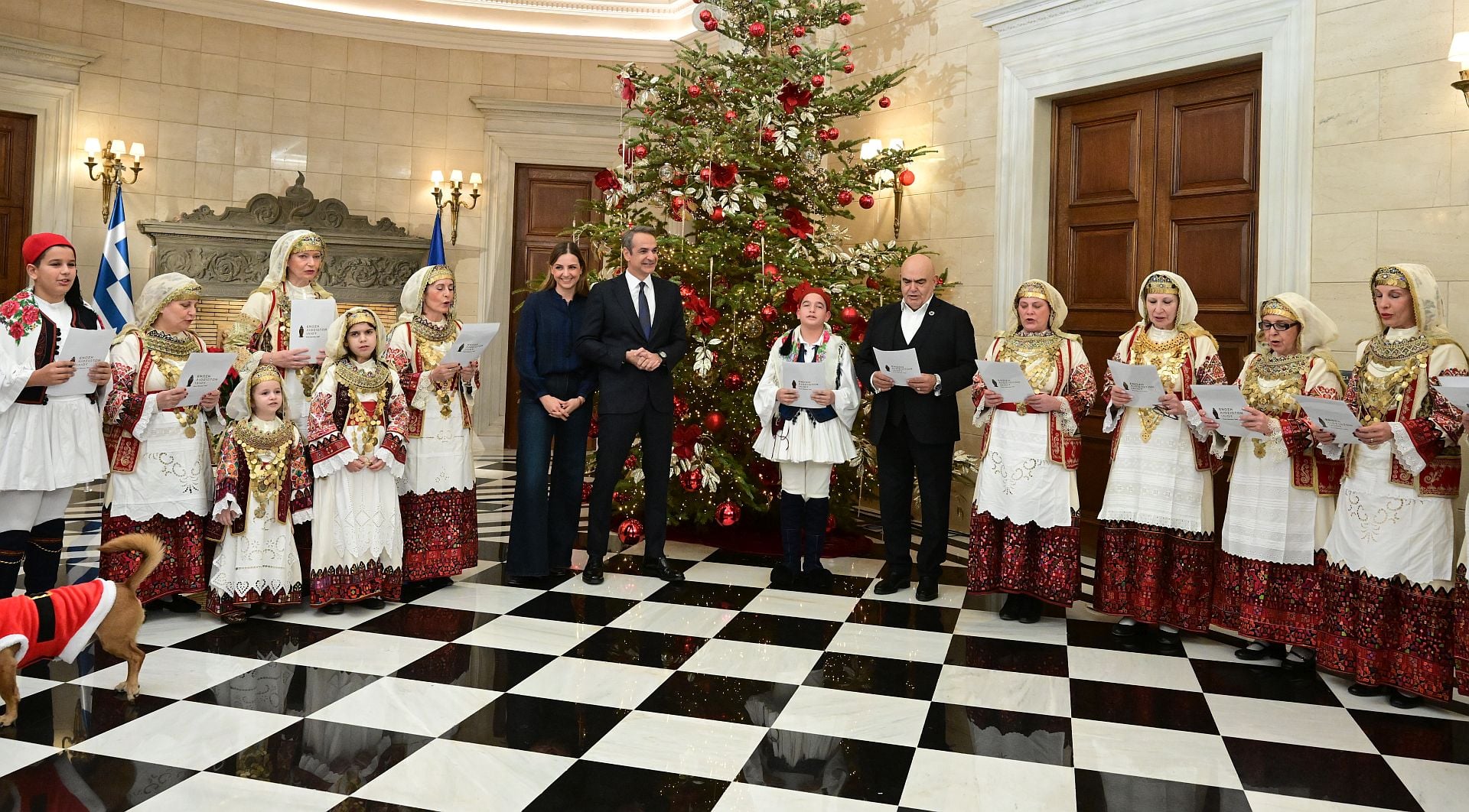 Στο Μέγαρο Μαξίμου ακούστηκαν σήμερα τα κάλαντα της Πρωτοχρονιάς, με τον πρωθυπουργό Κυριάκο Μητσοτάκη να υποδέχεται την Ένωση Λιοσιωτών Ιλίου.