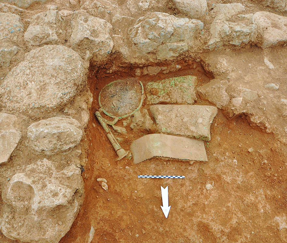 Παρά την απλή αρχιτεκτονική τους, δύο δωμάτια περιείχαν «θησαυρούς» από μέταλλα, γυαλί και ημιπολύτιμους λίθους. Ο πρώτος βρέθηκε το 2018 σε δωμάτιο που πιθανότατα χρησίμευε ως αποθηκευτικός χώρος. Η απόθεση περιείχε δύο τμήματα από χάλκινα τάλαντα, μια μάζα από σκωρίες και κοσμήματα, όπως χρυσό δαχτυλίδι, χρυσό βραχιόλι, 26 χρυσές χάντρες κ.ά.