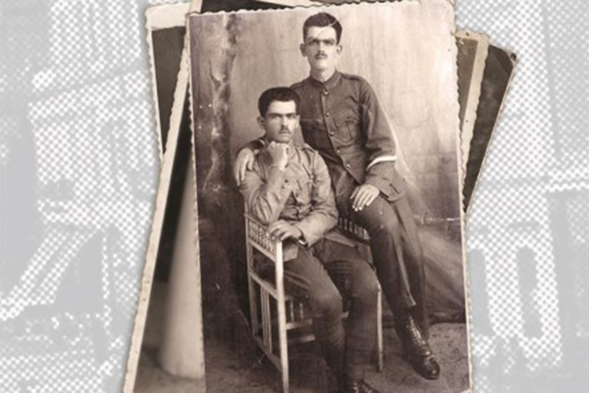 Στη φωτογραφία του εξωφύλλου απεικονίζονται οι Ευάγγελος και Γιώργος Δρακόπουλος με τις στολές του Ελληνικού στρατού της εποχής.
