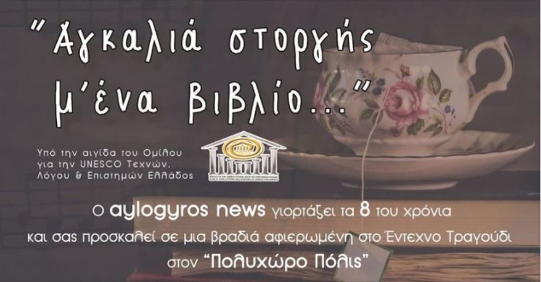 Το πολυθεματικό περιοδικό «aylogyros news», με αφορμή τα 8 χρόνια λειτουργίας του, διοργανώνει μια βραδιά αφιερωμένη στο έντεχνο τραγούδι, σε συνεργασία με τον πολυχώρο «Πόλις».