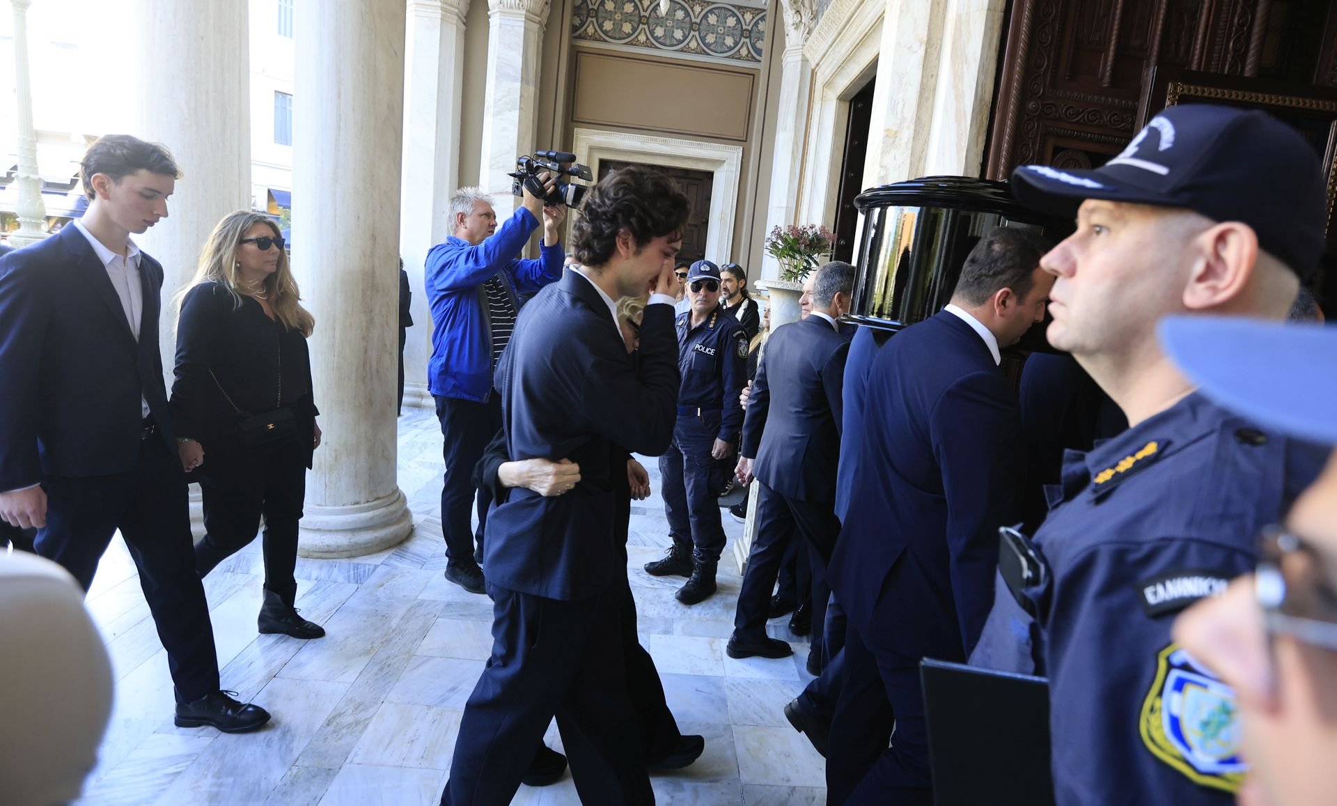 Στη εξόδιο ακολουθία παραβρίσκεται μεγάλος αριθμός από πολιτικούς, ομότεχνους του εκλιπόντος, καλλιτέχνες και διανοούμενοι.