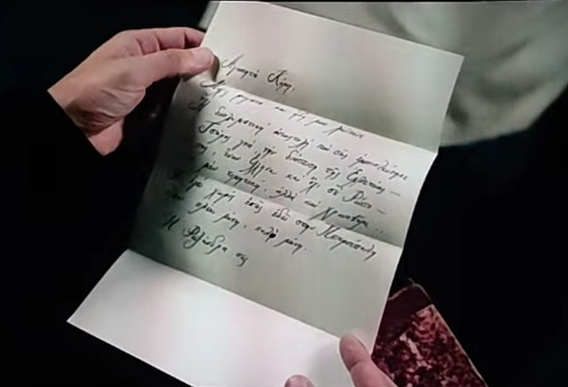 Το καλλιγραφικο γράμμα στα χέρια του Ιωάννη Καποδίστρια (πηγή φωτογραφίας print screen)