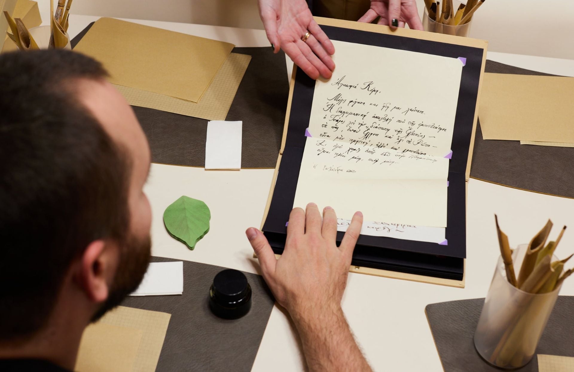Και συνεχίζει μεταφέροντας μας στο κόσμο της καλλιγραφίας, της τέχνης της καλής γραφής, όπως λέει και το όνομά της, η οποία χάνεται στα βάθη των αιώνων.