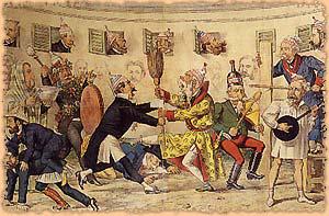 Ακόμα και ο μεγάλος Χαρίλαος Τρικούπης, δεν αγόρευε χωρίς οχλήσεις μέσα στη Βουλή. Ο κοινοβουλευτικός συντάκτης του περιοδικού «Μη Χάνεσαι» στις 15 Φεβρουαρίου 1882 είχε περιγράψει παραστατικά την κατάσταση αυτή, γράφοντας: «Πελματώδη ποδοκροτήματα, φουχτώδη χειροκροτήματα και χειλώδη σφυρίγματα, διέκοπτον την αγόρευσιν του κ. Τρικούπη. Ο κ. Πετιμεζάς προειδοποίησε τον κ. Πρόεδρον ότι το Βουλευτήριον δεν πρέπει να μεταβληθεί εις Ζυθοπωλείον». Εκείνη την ημέρα, κατά την ίδια περιγραφή «τα ακροατήρια τόσον αχρείεψαν, ώστε πολλοί κάθηνται στραβοπόδι, επί των θεωρείων εις στάσιν: Και στα πέντε βιλαέτια, φάτε πιήτε βρε αδέλφια»!