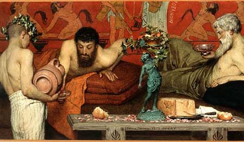 Ένα καλό τραπέζωμα μας παρουσιάζει και ο Αριστοφάνης («Εκκλησιάζουσαι» 838-845).