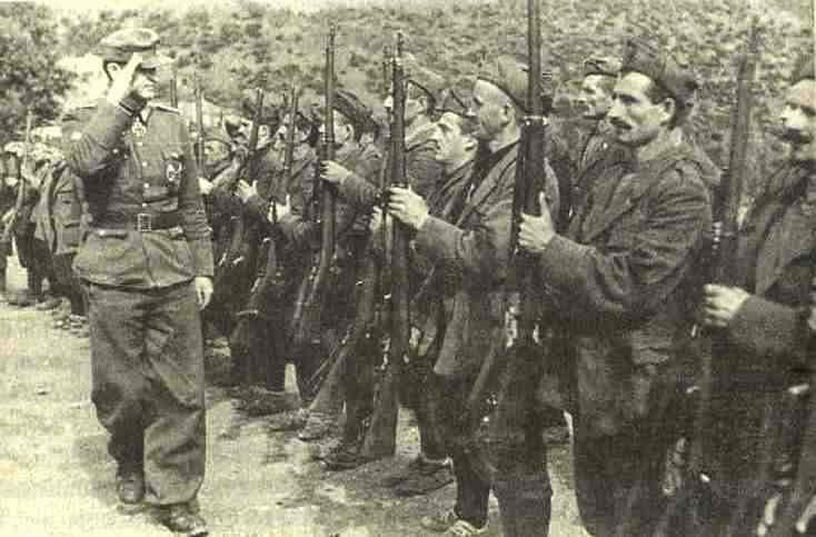 Γερμανός Αξιωματικός επιθεωρεί παρατεταγμένο σώμα Τσάμηδων