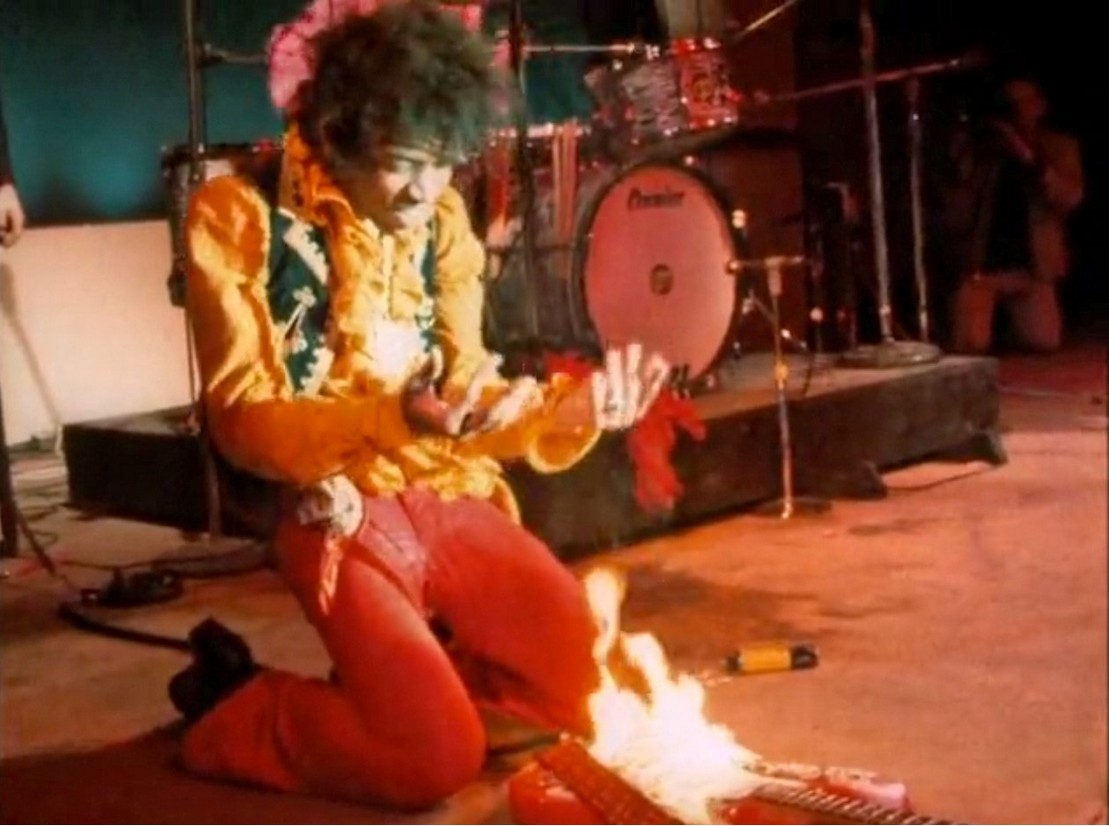 Άρχισε να σκέπτεται τις τελετουργίες των Ινδιάνων. Ανέβηκε στη σκηνή. Τα… έδωσε όλα. Έπαιξε με την κιθάρα στην πλάτη, με τα δόντια, με ότι ήτην δυνατό να βγάλει ήχο. Κι εκεί στο αποκορύφωμα της μελωδίας αποφασίζει να της βάλει φωτιά!