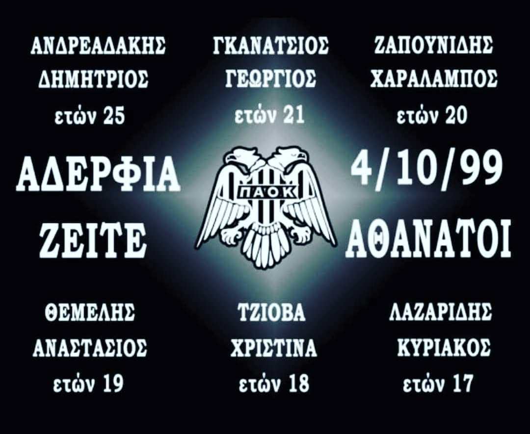 Ήταν 4η Οκτωβρίου του 1999 και το ρολόι έδειχνε 4:15 τα ξημερώματα, όταν έξι νεαρά παιδιά «πλήρωναν» με αίμα την μεγάλη τους αγάπη για τον ΠΑΟΚ.
