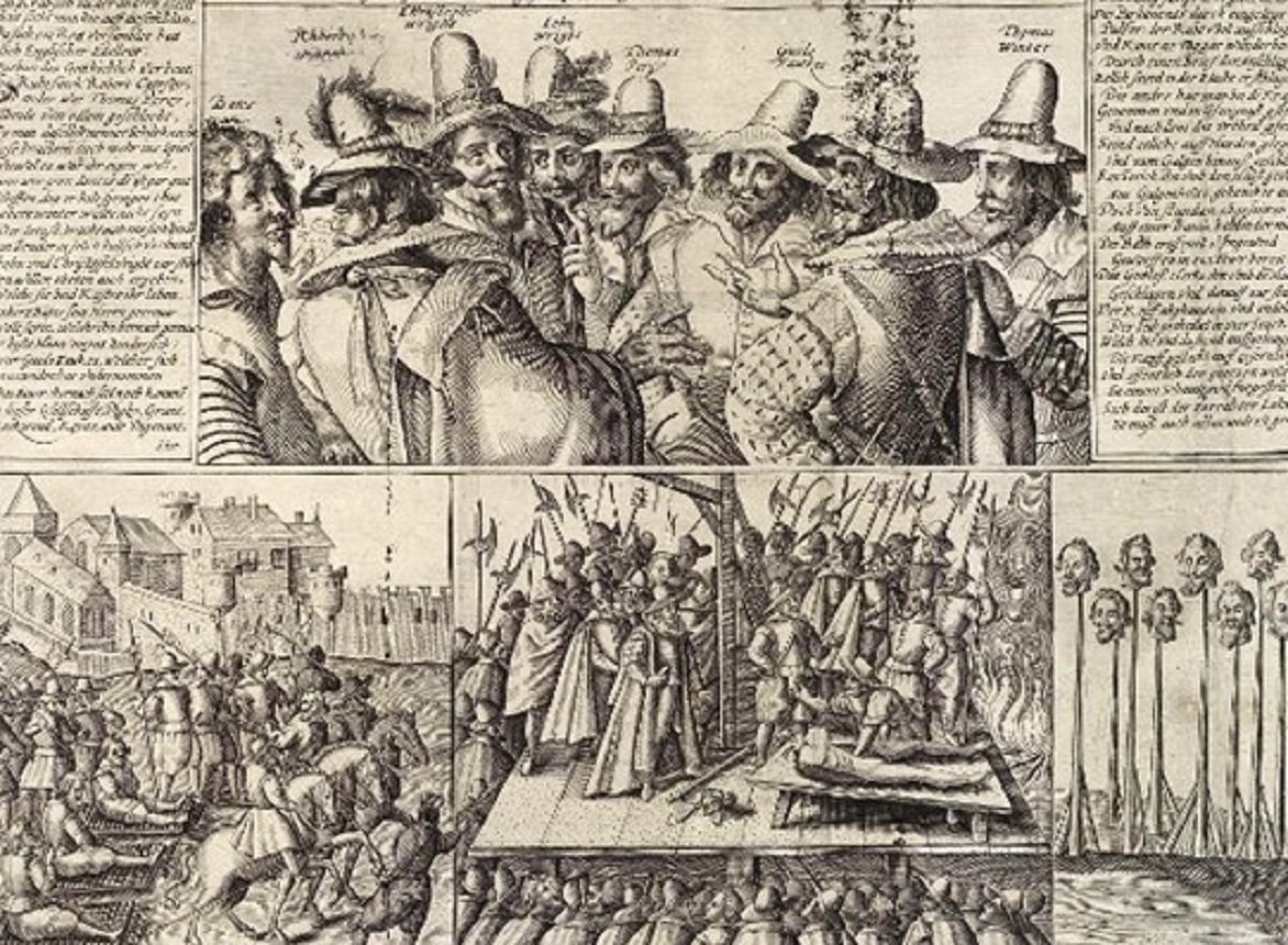 Ο Ρόμπερτ Κέιτσμπι, διαπιστώνοντας ότι οι Καθολικοί κινδυνεύουν να γίνουν πολίτες δεύτερης κατηγορίας μέσα στην ίδια τους την πατρίδα, άρχισε να επεξεργάζεται ένα σχέδιο για την ανατροπή του βασιλιά.