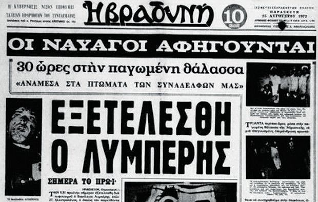 Ο δημοσιογράφος Νίκος Γερακάρης και ο φωτορεπόρτερ Βασίλης Καραμανώλης (και οι δύο συνάδελφοί μου αργότερα στην «Καθημερινή» της Ελένης Βλάχου) ήταν οι μόνοι εκπρόσωποι του Τύπου οι οποίοι στις 25 Αυγούστου 1972 παρέστησαν στην εκτέλεση του Λυμπέρη, που έγινε βάσει του νόμου 3861/1929 «περί εκτελέσεως της θανατικής ποινής», με το πρώτο φως του ήλιου. Και έμελλε να είναι η τελευταία εκτέλεση καταδίκου που έγινε στην Ελλάδα!