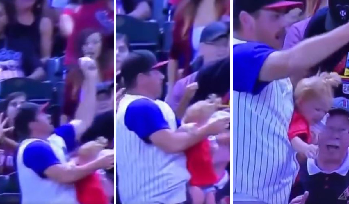 Πατέρας προτίμησε να αφήσει από τα χέρια του την κόρη του και όχι την μπύρα του για να πιάσει το μπαλάκι του μπέιζμπολ (video)