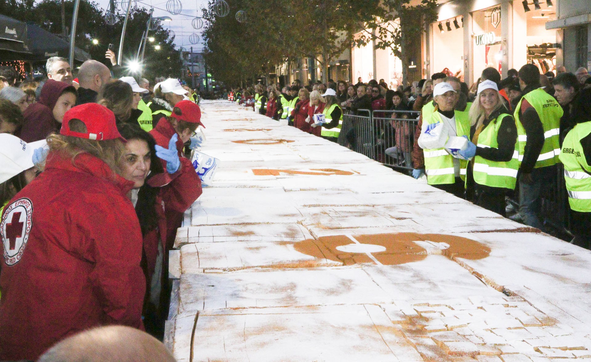 Για την παρασκευή της χρησιμοποιήθηκαν 6,2 τόνοι αλεύρι και 6.500 αυγά, ενώ το τελικό αποτέλεσμα ξεπερνά σε μήκος τα 100 μέτρα.