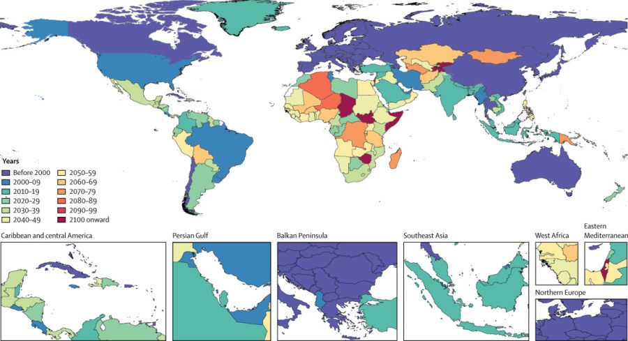 Ως αποτέλεσμα, οι ερευνητές αναμένουν ότι ο αριθμός των ανθρώπων στον πλανήτη θα κορυφωθεί στα 9,7 δισεκατομμύρια γύρω στο 2064, πριν μειωθεί στα 8,8 δισεκατομμύρια μέχρι το τέλος του αιώνα.